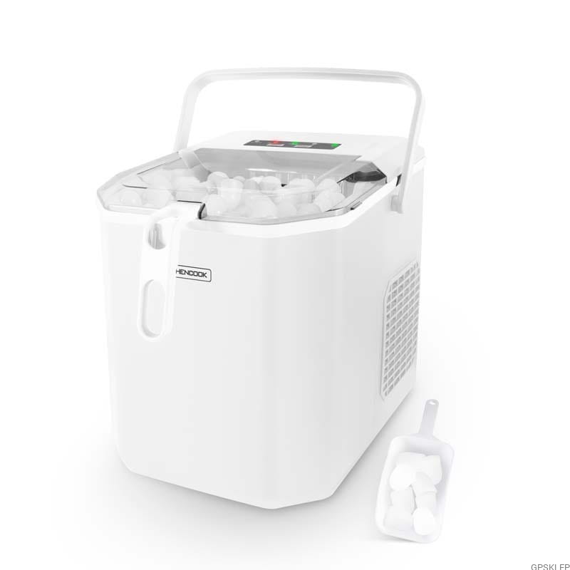 Urządzenie wyposażone jest w funkcję spustu umożliwiającą szybkie opróżnienie z wody, przezroczystą pokrywę umożliwiającą podgląd kostek lodu oraz łyżkę do kostek lodu wykonaną z tworzywa.