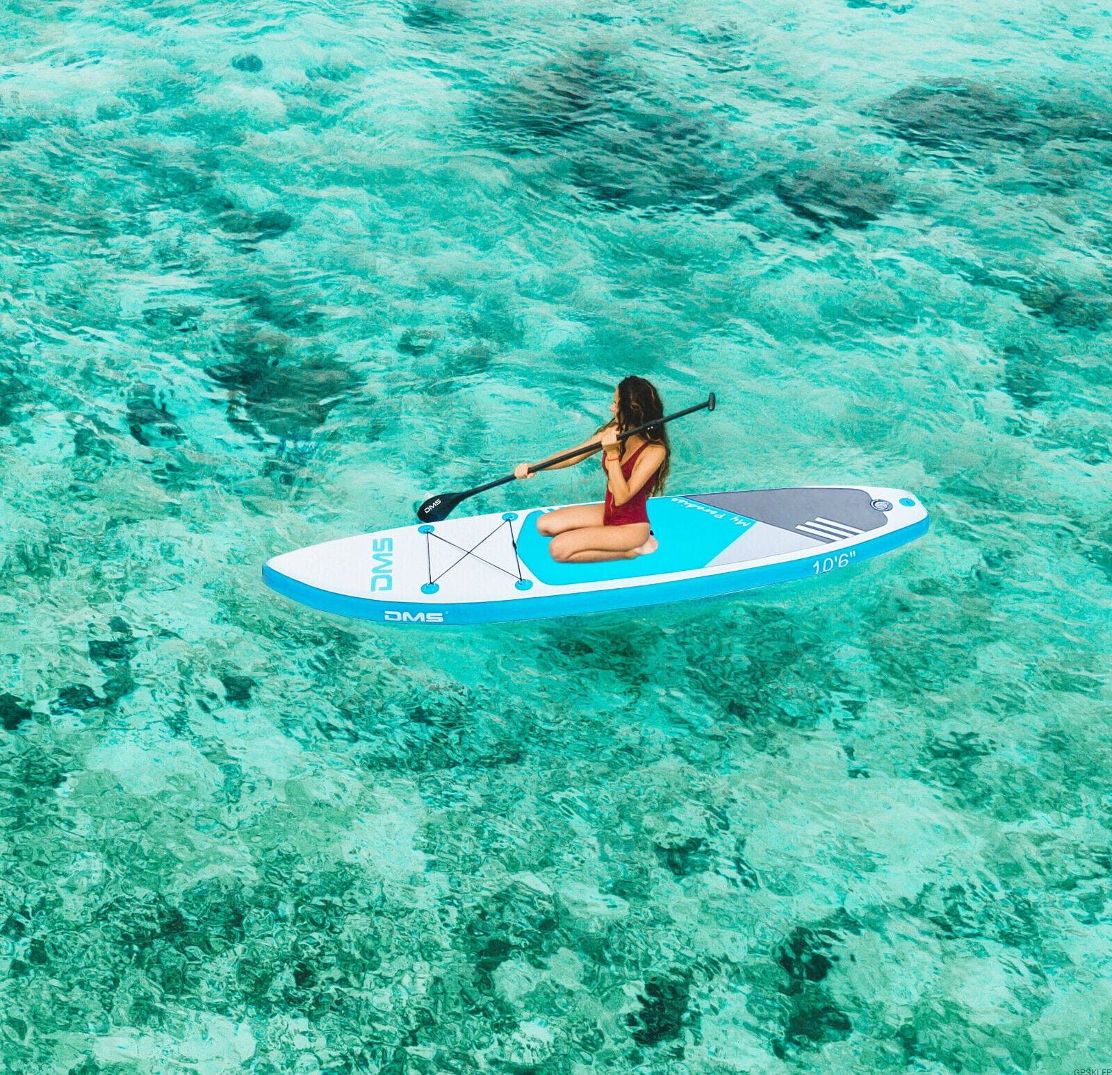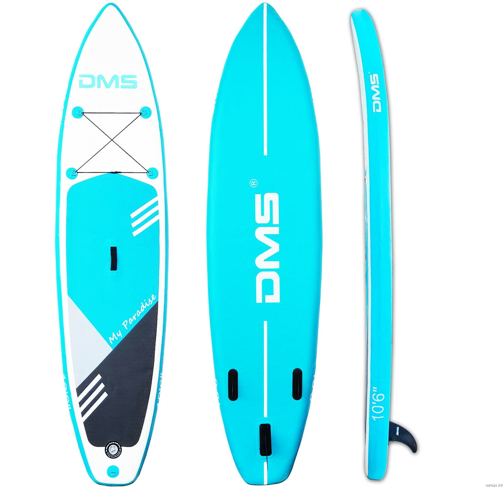 Paddleboard DMS SUP-320 to deska do sportów wodnych, wykonana z wysokiej jakości pianki, a więc bardzo lekka, a jednocześnie niezwykle stabilna i utrzymująca kierunek. Niewielka waga pozwala na doskonałą zwrotność i łatwe przenoszenie, a kształt i struktura sprawiają, że deska nadaje się do korzystania na spokojnych wodach, tj. jeziorach, stawach, morzach i wolniejszych rzekach.