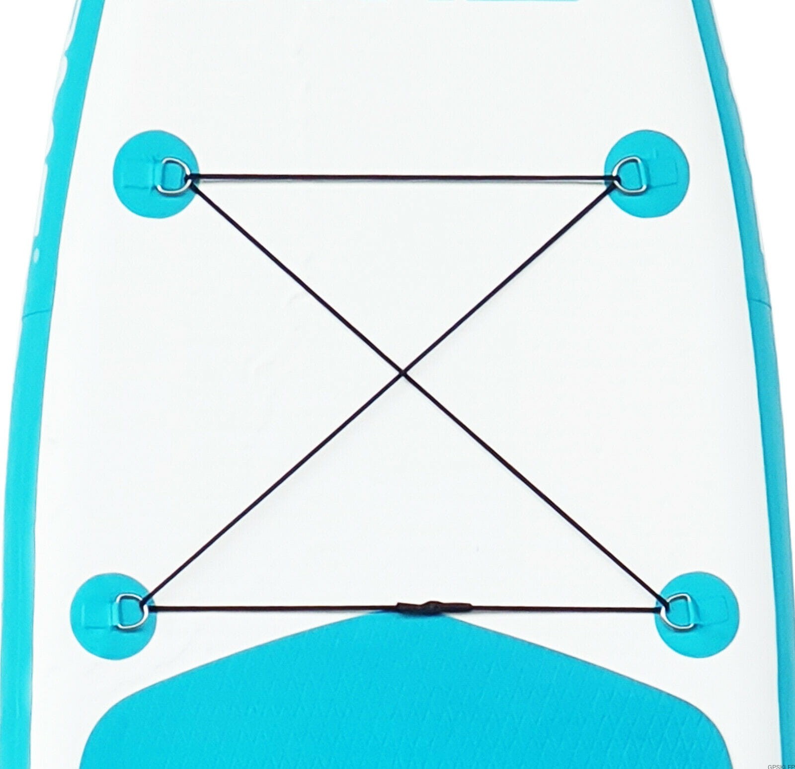 Deska wyposażona jest również w pierścienie do mocowania siedziska, dzięki czemu można dodatkowo do deski przymocować siedzisko i pływać w stylu kajakowym.