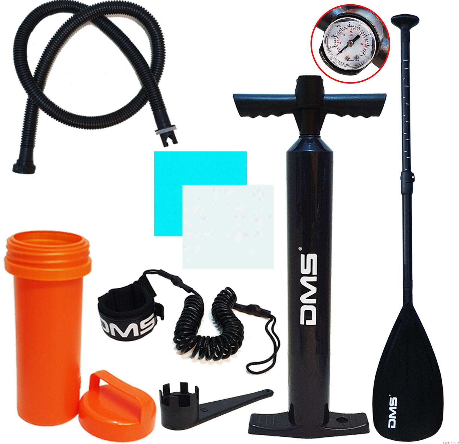 - W zestawie aluminiowe wiosło, smycz bezpieczeństwa, pompa wysokociśnieniowa z manometrem, plecak do noszenia, płetwa i zestaw naprawczy
