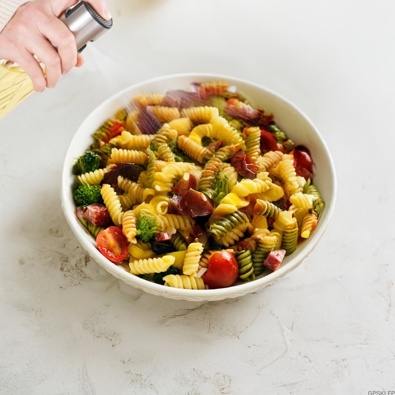 Butelka do spryskiwania SPRAY90 KITCHENCOOK łączy w sobie trwałość stali nierdzewnej z elegancją szkła, tworząc praktyczne i estetyczne akcesorium kuchenne. System rozpraszania lekkiej mgiełki pozwala na zdrowsze wykorzystanie oleju poprzez ograniczenie jego ilości. Wielofunkcyjny i wielokrotnego użytku, idealnie nadaje się do olejów, octu, soku z cytryny, a nawet wody. Przezroczysty zbiornik pozwala łatwo kontrolować poziom płynu. Doskonale wpasowuje się w tendencję zdrowego pieczenia we frytkownicach beztłuszczowych, do delikatnego spryskania pieczonych potraw.