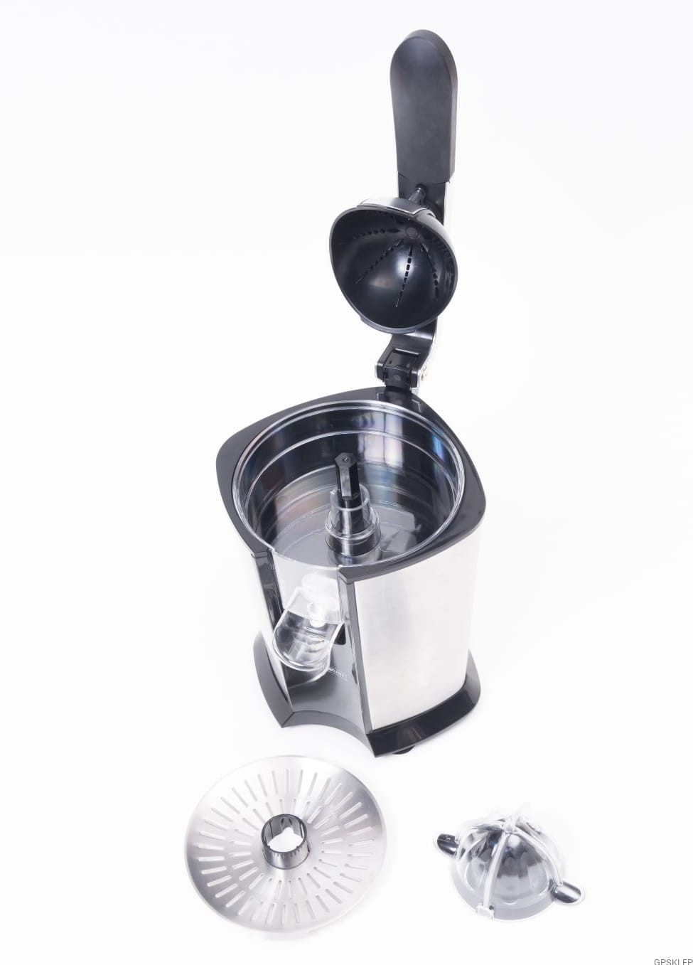 Mocne ramię zakończone wygodną rączką, uniwersalny stożek pasujący do większości standarowej wielkości cytrusów, a także kurek zapobiegający kapaniu czynią to urządzenie bardzo praktycznym.