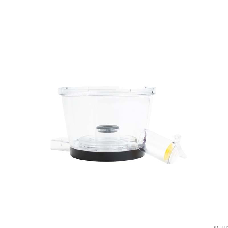 Urządzenie wyposażone jest w 2 wyloty: szerszy wylot do zbierania soku i drugi wylot do zbierania miąższu. W zestawie znajdują się 2 pojemniki, a także wyjmowany filtr ze stali nierdzewnej i tworzywa sztucznego, umożliwiający jednoczesne zbieranie soku i miąższu w celu uzyskania jednorodnego, klarownego soku bez pozostałości.