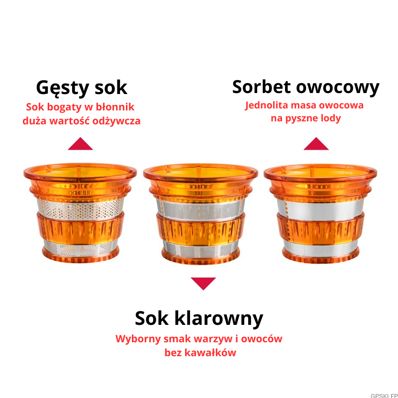 - Klarownego soku: zachowuje cały smak i zalety owoców, warzyw i ziół, bez kawałków