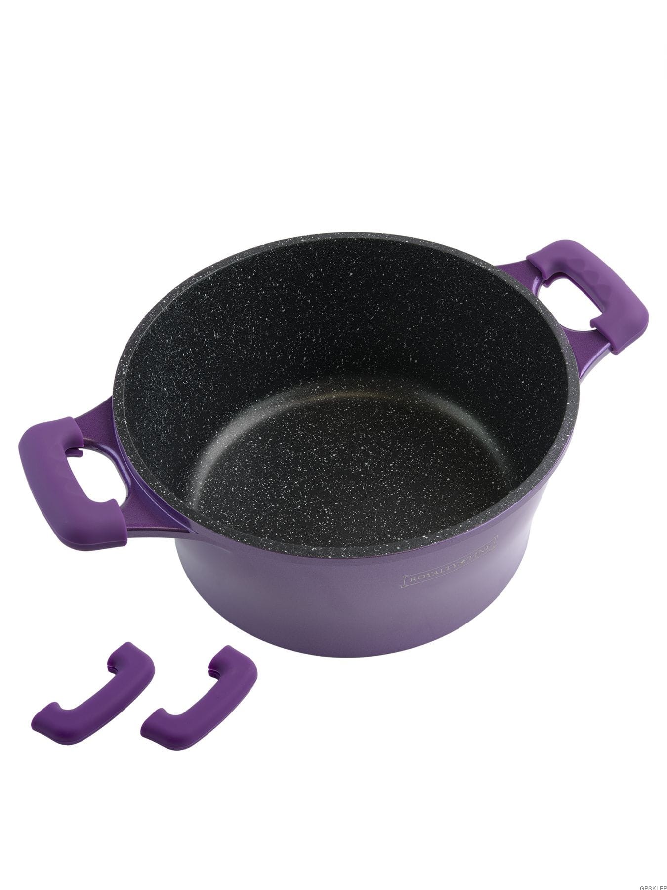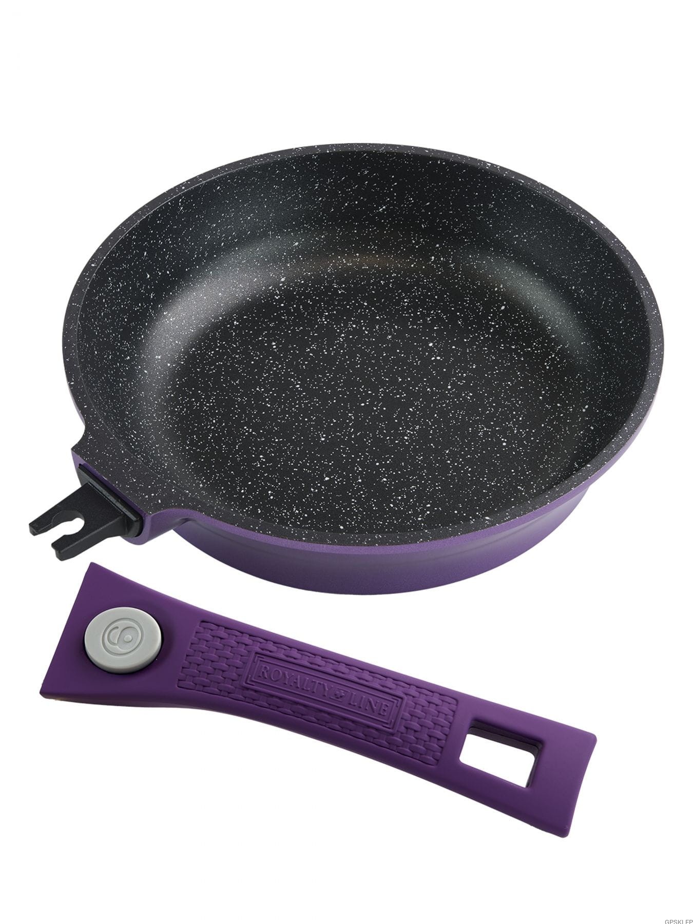 Zestaw garnków wysokiej jakości RL-ES2014M w kolorze fioletowym, to rzucająca się w oczy propozycja firmy Royalty Line - zestaw garnków z powłoką marmurową, oraz nieprzywierającą powłoką greblonową. Powłoka greblonowa to jedna z najlepszej jakości powłok nieprzywierających, gdyż jest wytrzymała, a przede wszystkim nie zawiera żadnych szkodliwych substancji typu kadm czy PFOA. Odmiana greblonu 3+ oznacza również, że można swobodnie używać tych garnków i patelni bez tłuszczu, a potrawy nie przyklejają się do dna. Garnki takie doskonale nadają się do smażenia i duszenia warzyw, mięsa, do robienia sosów, gotowania zup i innych przygotowań.