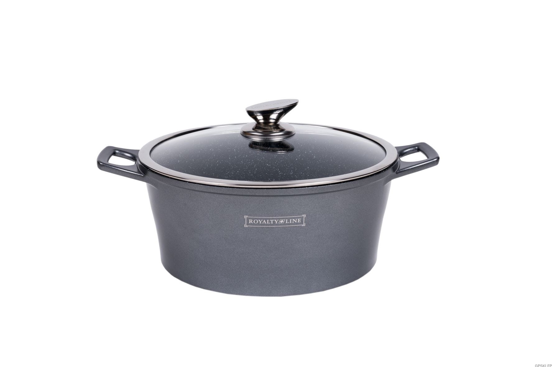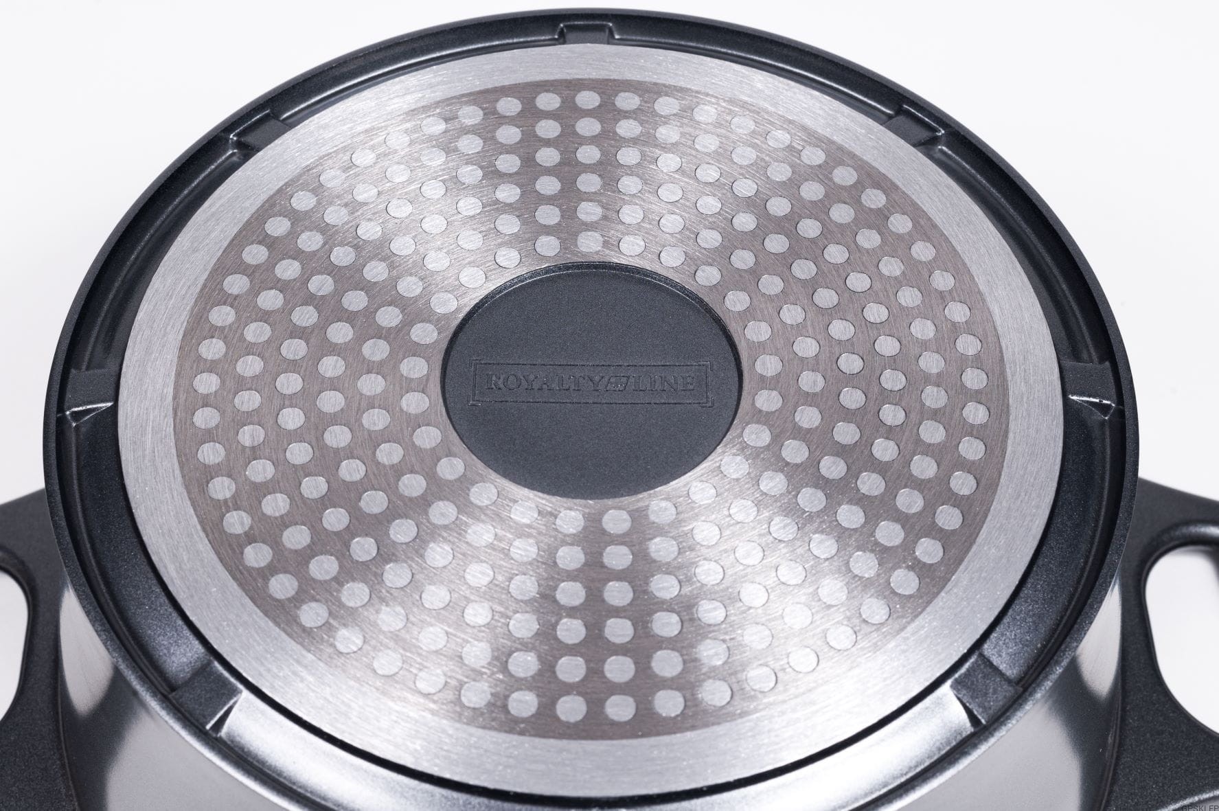 Zestaw garnków wysokiej jakości RL-ES2014M w kolorze srebrnym, to elegancka propozycja firmy Royalty Line - zestaw garnków z powłoką marmurową, oraz nieprzywierającą powłoką greblonową. Powłoka greblonowa to jedna z najlepszej jakości powłok nieprzywierających, gdyż jest wytrzymała, a przede wszystkim nie zawiera żadnych szkodliwych substancji typu kadm czy PFOA. Odmiana greblonu 3+ oznacza również, że można swobodnie używać tych garnków i patelni bez tłuszczu, a potrawy nie przyklejają się do dna. Garnki takie doskonale nadają się do smażenia i duszenia warzyw, mięsa, do robienia sosów, gotowania zup i innych przygotowań.
